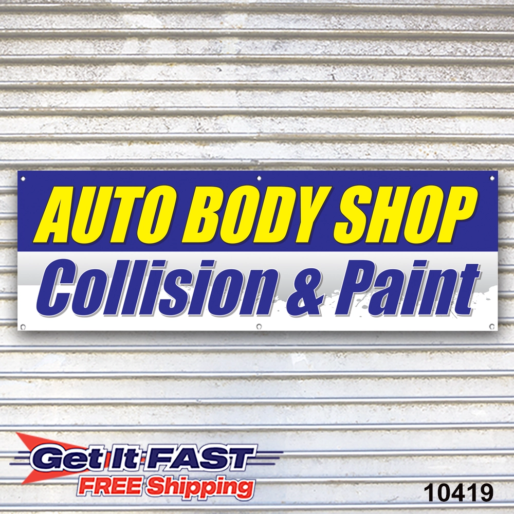 Auto Body Shop Collision Paint Vinyl Banner Ideal for use in service bays along fences or building walls.