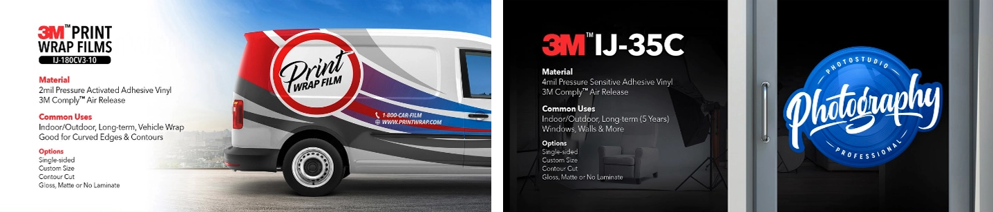 3M Print Wrap Film 2ml Pressure Activated/Adhesive Vinyl 3M Comply™ Air Release. Indoor/Outdoor Long Term Vehicle Wrap. Good for Curved Edges & Contours.