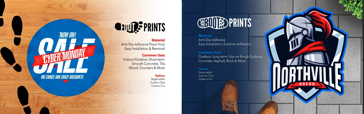 Boot Prints Anti-Slip Adhesive, Easy Installation, Extreme Adhesion. Outdoor Long Term Use on Rough Surface Concrete, Asphault, Brick & More.