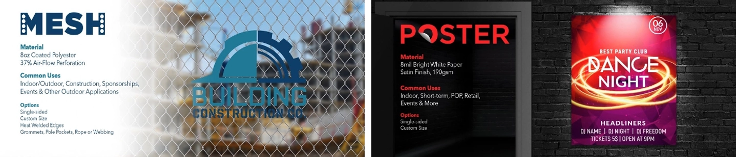 Mesh Banner A lightweight, durable banner material designed for outdoor use. It features micro-punctures that allow 37% airflow, reducing wind resistance while maintaining vibrant, full-color prints.